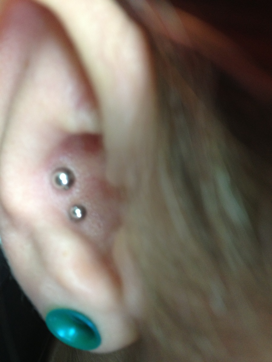 This client was a trooper, getting her Industrial and Daith done in the same day. She chose two keep it…